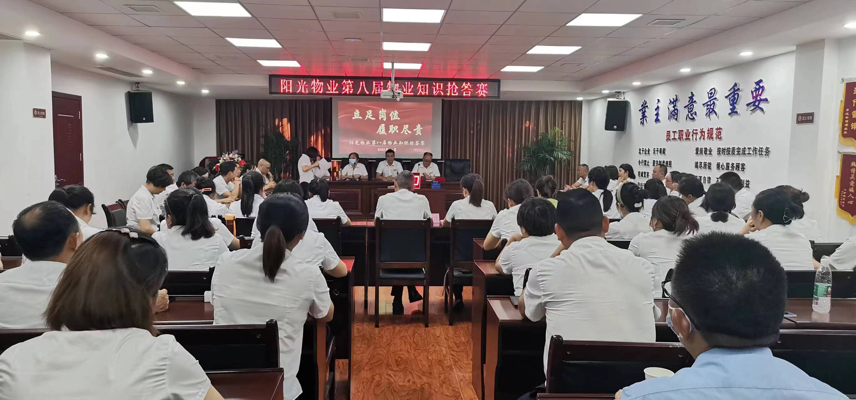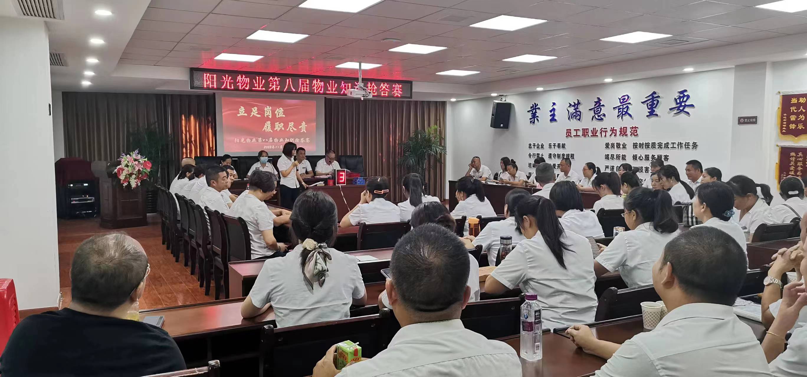 8月13日上午,陽光物業(yè)公司總部會議室傳來一陣陣熱烈的掌聲,“閉路監(jiān)控鏡頭應根據(jù)哪些部位進行區(qū)分?設備房每平方米需要多大的亮度?房屋的建筑主體具體包括哪些部位?”這是陽光物業(yè)、沁園春物業(yè)的全體管理人員在開展“立足崗位、履職盡責”物業(yè)管理知識搶答賽活動。